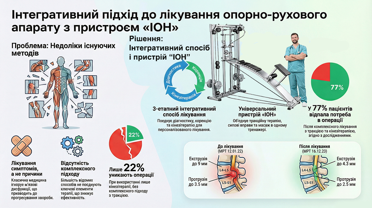 Медичним центром KinesisLife розроблена інтегративна методика лікування захворювань опорно-рухового апарату, для ефективної реалізації якої створено багатофункціональний тренажер ІОН.